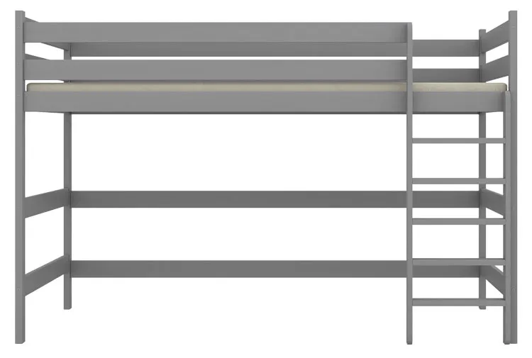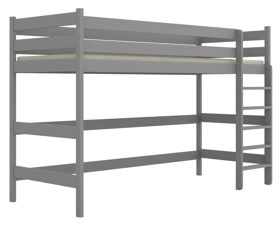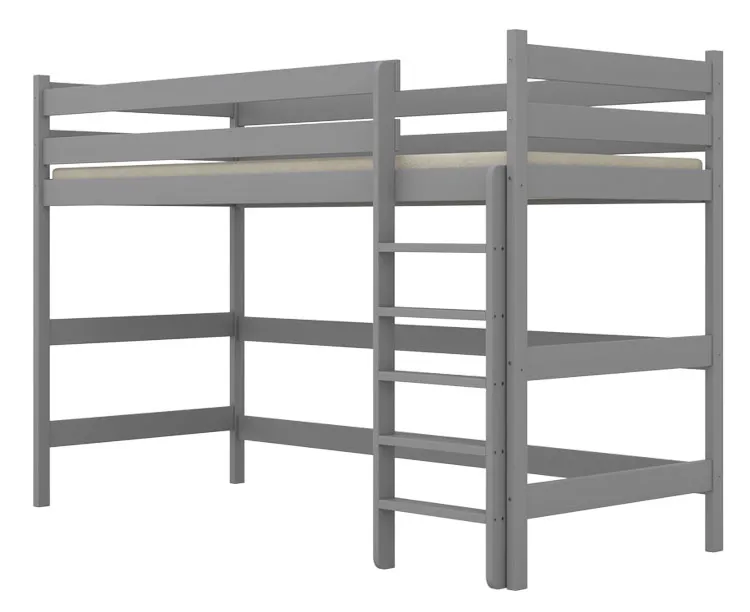Szare sosnowe łóżko dla dziecka na antresoli Jukki - 5 rozmiarów