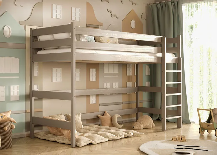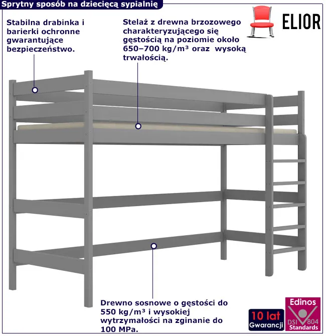 Szare pojedyncze łóżko z antresolą dla dzieci Jukki