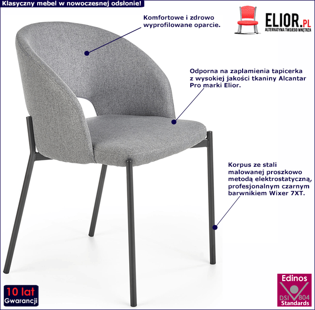 • Kolor: Popielata tapicerka i czarne nóżki. Kliknij w link i zobacz też inne krzesła nieobrotowe do biurka w sklepie Edinos.pl - na pewno znajdziesz coś dla siebie!