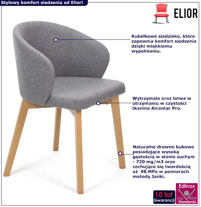 • Ponadczasowy design krzesła doskonale komponuje się z różnymi stylami aranżacji wnętrz.