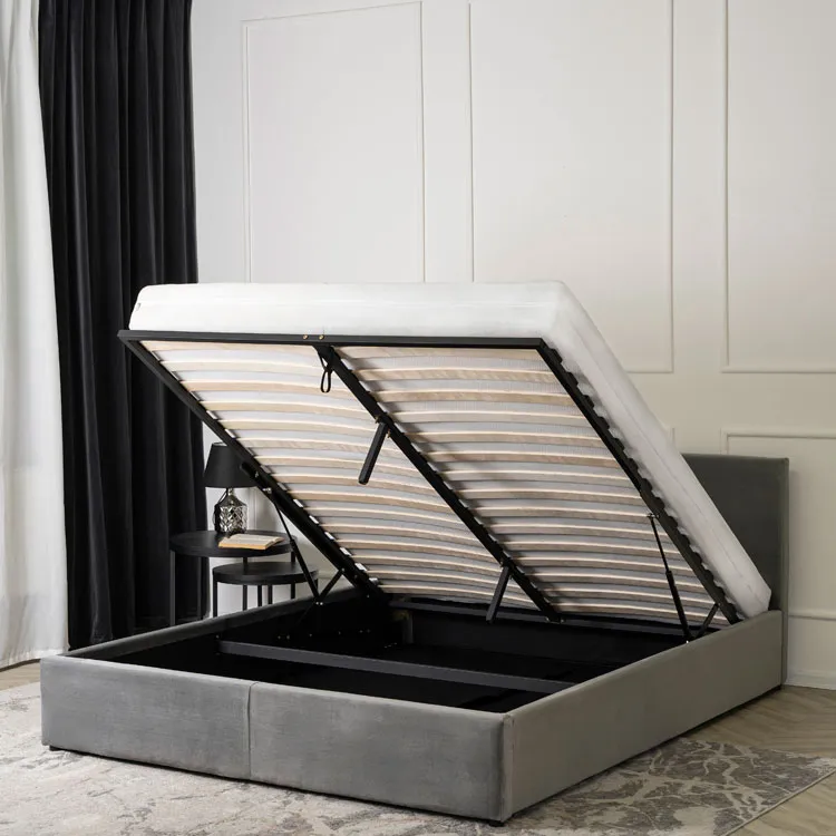 Szare łóżko welurowe z zagłówkiem 140x200  Piri