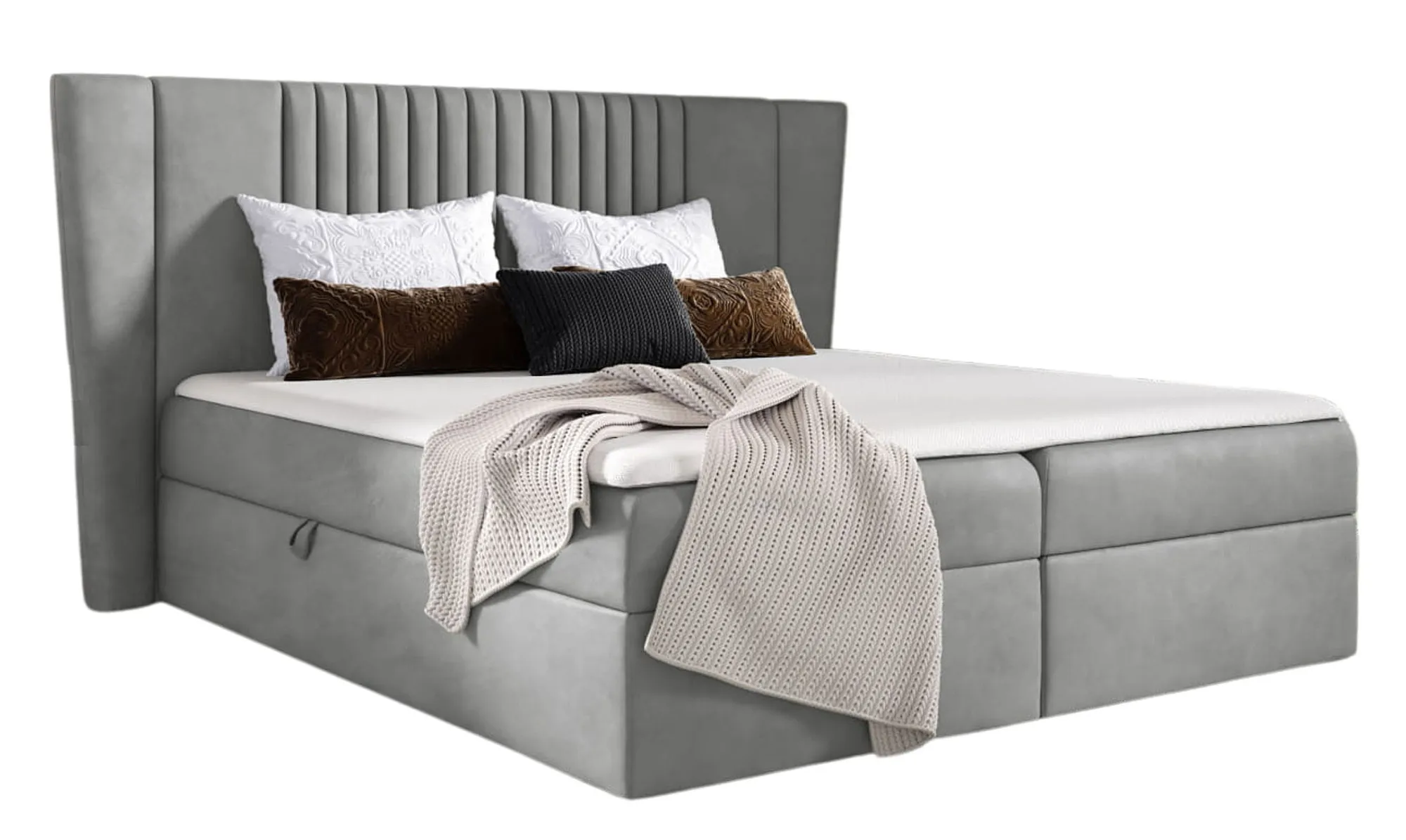 Szare tapicerowane łóżko welurowe 5 rozmiarów - Orlento