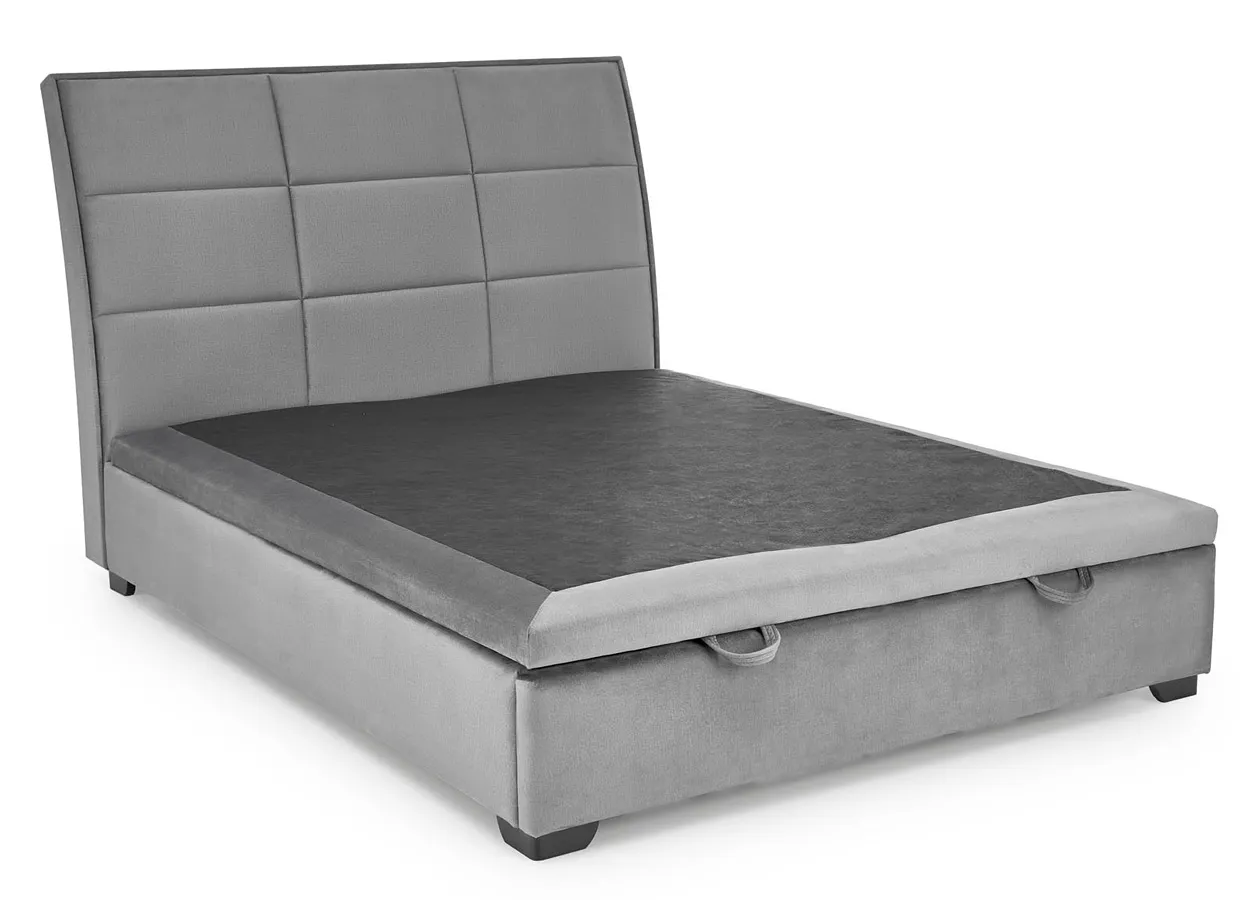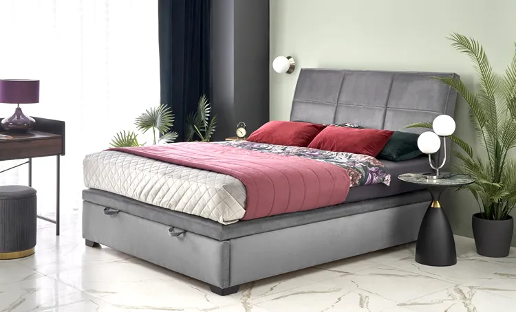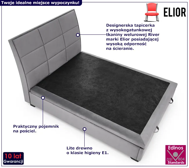 Dotyczy: Beżowe welurowe łóżko z pikowanym zagłówkiem 160x200 cm - Norda 4X