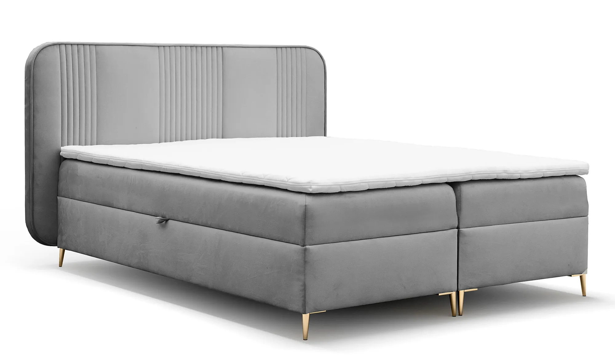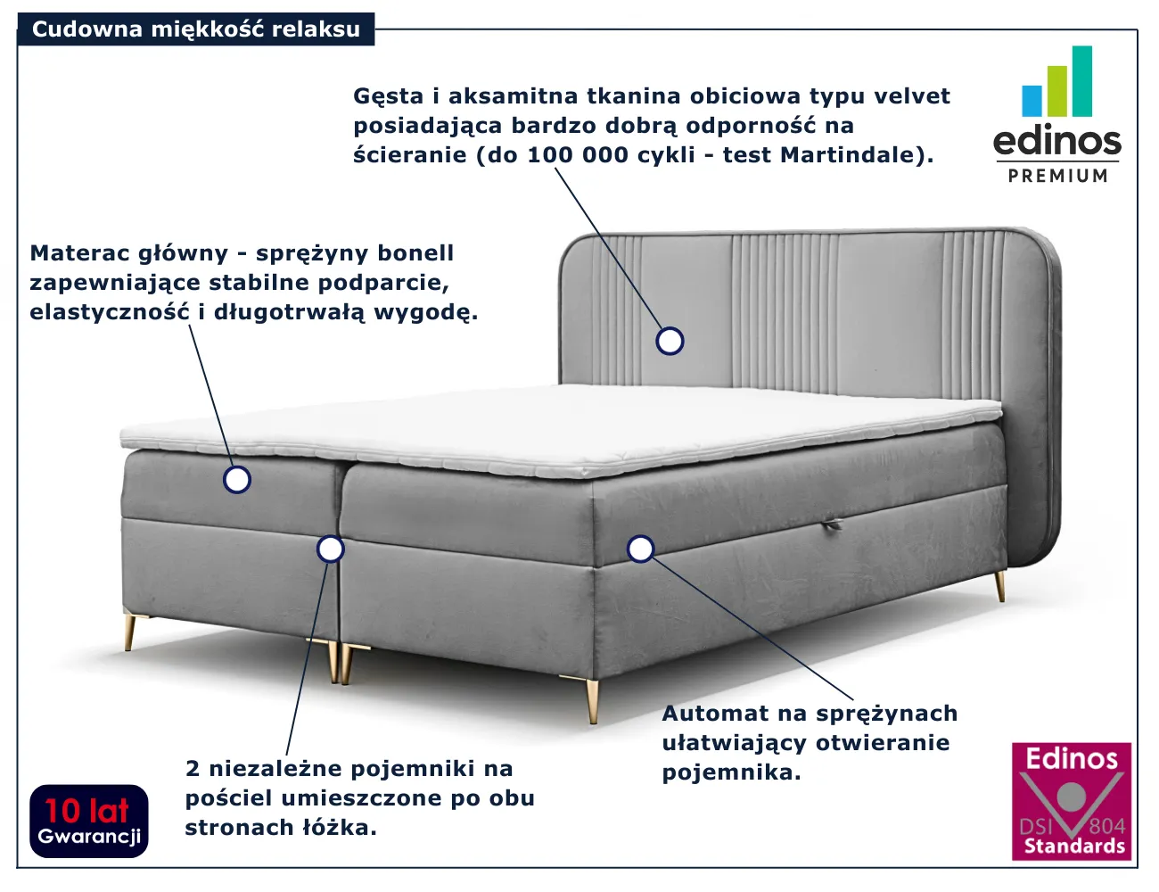 Szare welurowe łóżko kontynentalne 4 rozmiary - Averell