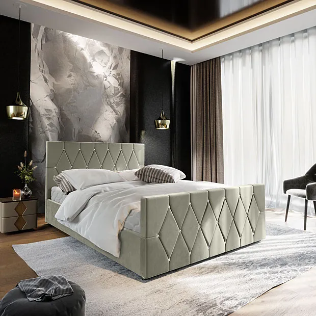 Szare nowoczesne łóżko welurowe Diamare