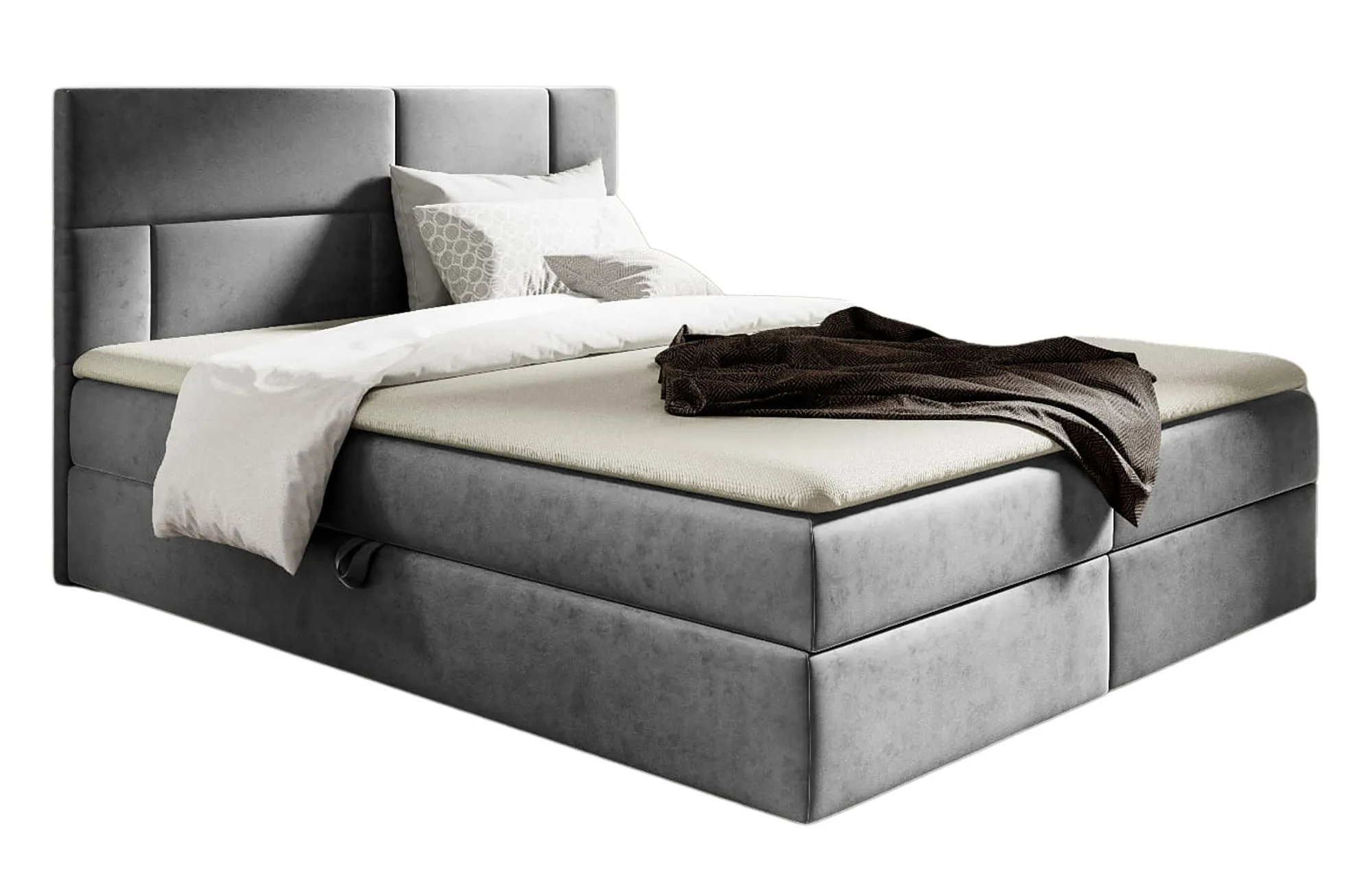 Szare welurowe łóżko tapicerowane z pojemnikiem 5 rozmiarów - Orellis