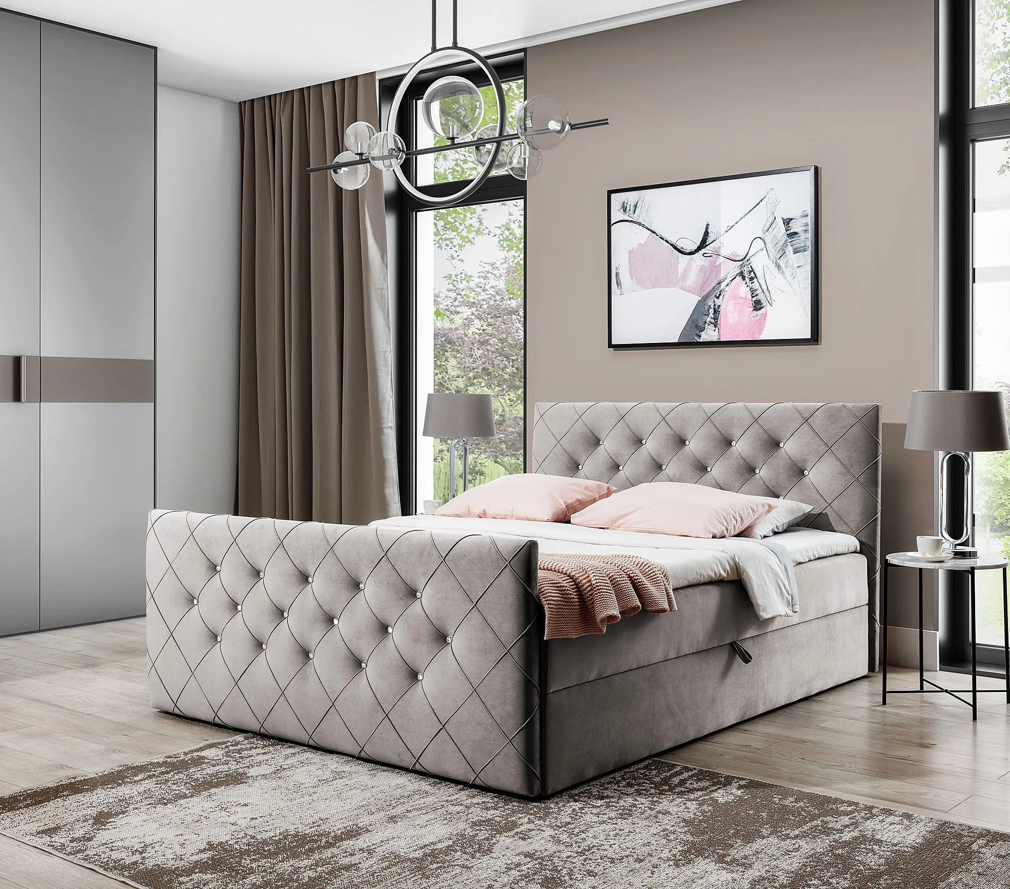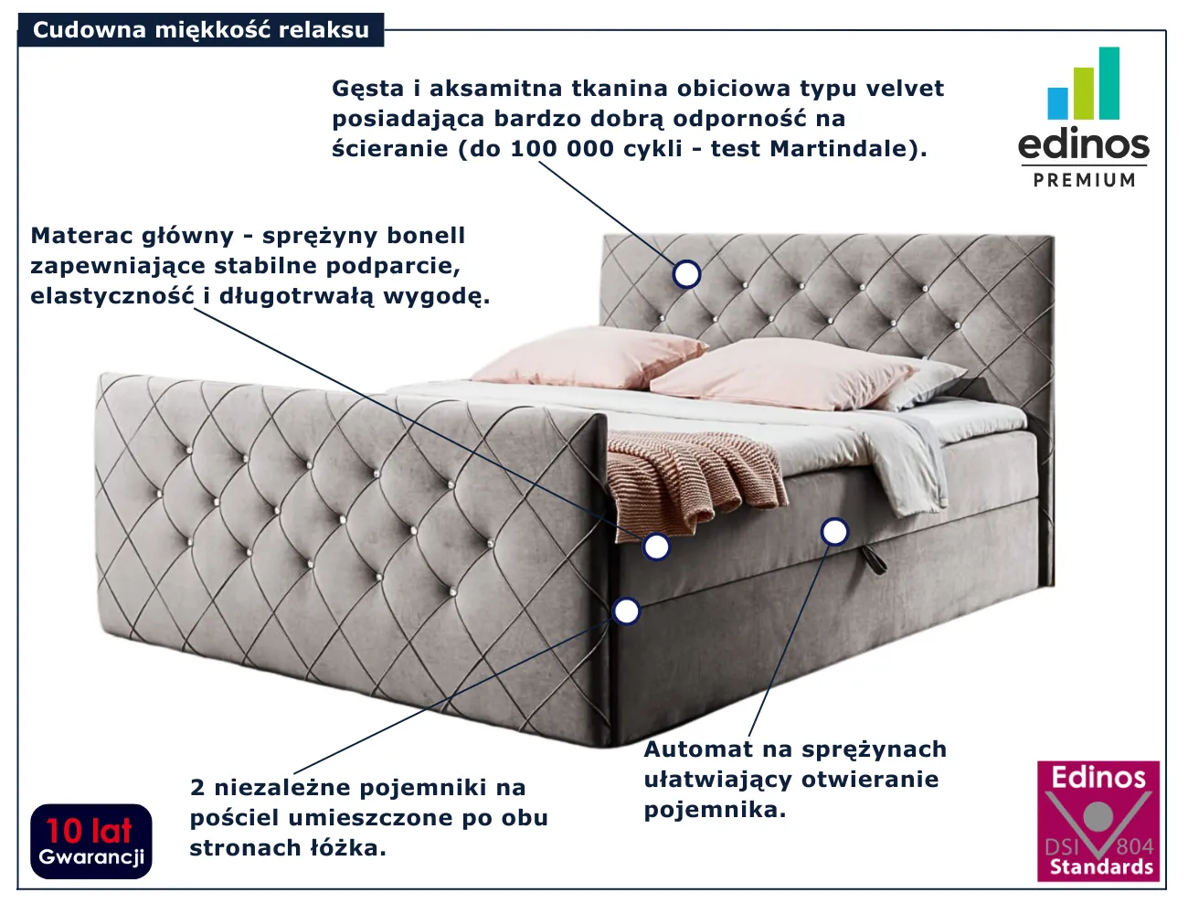 Dotyczy: Kremowe łóżko kontynentalne z pojemnikiem 5 rozmiarów - Celivera