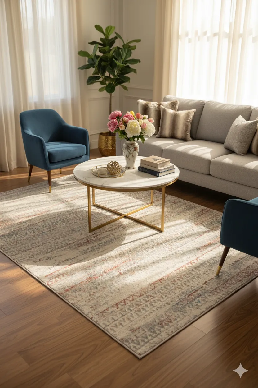 Dotyczy: Przecierany dywan w pasy z ornamentem - Julin 2X