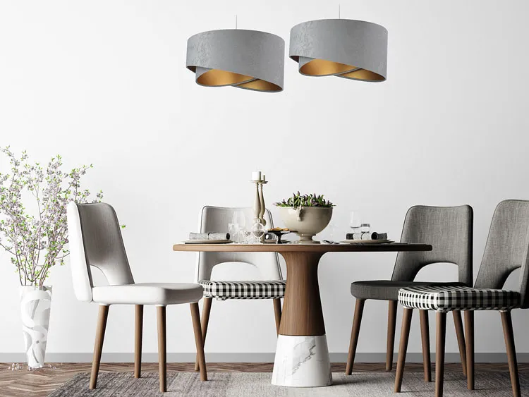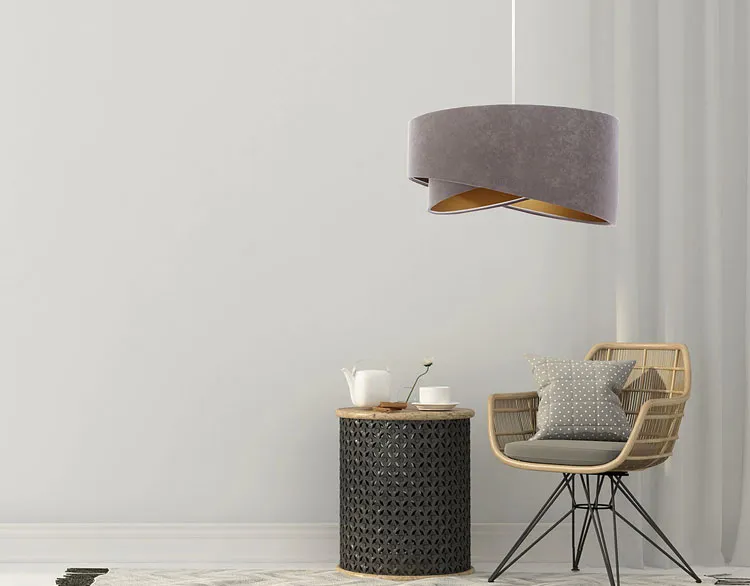 Dotyczy: Szaro-biała lampa wisząca welurowa - EX974-Duso