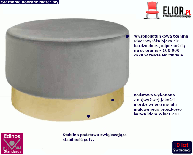 • Kolor: szaro-złoty. Kliknij w link i sprawdź także inne pufy w sklepie Edinos.pl. Stwórz swój praktyczny zestaw mebli.