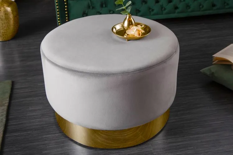 Szaro-złota pufa tapicerowana okrągła - Merolo