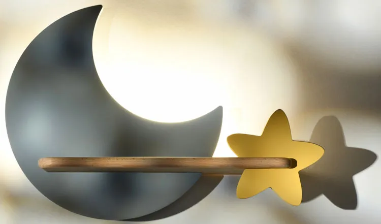 sypialnia dziecięca z zastosowaniem lampki ściennej księżyc - K029-Buk