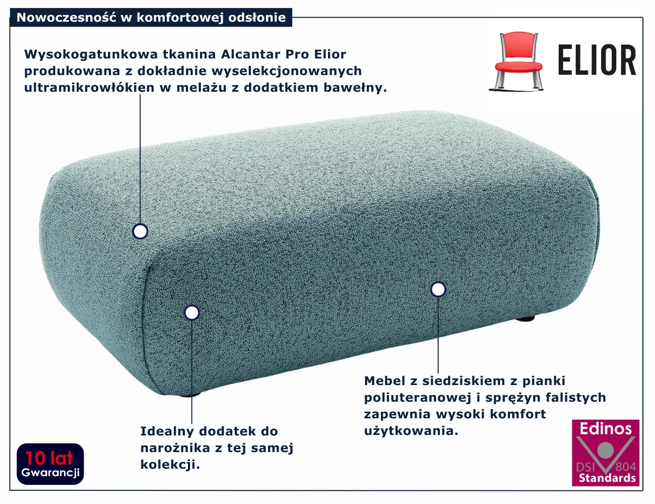 Mezzia 4X marki Edinos Premium to pufa, która w naturalny sposób dopełnia strefę wypoczynku i zwiększa funkcjonalność salonu. Może służyć jako wygodny podnóżek, dodatkowe siedzisko lub praktyczny element aranżacji. Starannie dobrane materiały oraz dopracowana forma sprawiają, że mebel prezentuje się elegancko i ponadczasowo. To doskonały wybór dla osób, które chcą stworzyć spójną i komfortową przestrzeń do codziennego życia. Wybierz puf Mezzia 4X i uzupełnij swoje wnętrze o stylowy akcent już dziś w cenie {cena} zł.