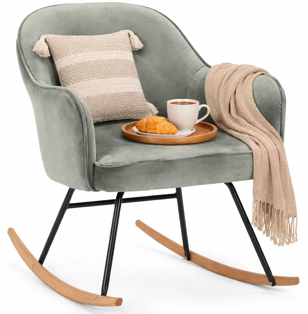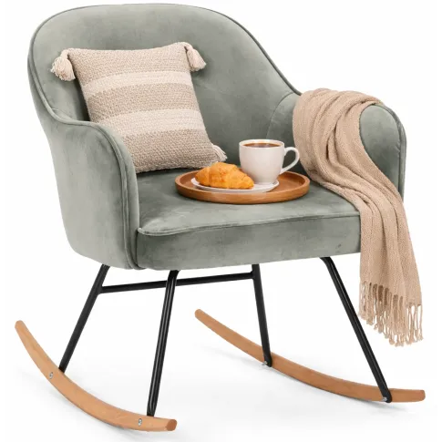 Wyściełany fotel bujany Merco doskonale sprawdzi się w salonie, sypialni, pokoju dziecinnym i w dowolnym pomieszczeniu dziennym. Jego nowoczesny, skandynawski design niewątpliwie doda elegancji i smaku do Twoich wnętrz oraz wniesie domową atmosferę i komfort do Twojej przestrzeni życiowej. Zestawienie miękkiej i aksamitnej tkaniny oraz modernistycznej żelaznej podstawy tworzy mebel o wyjątkowo dekoracyjnym, a jednocześnie wysmakowanym efekcie. Projekt ten doskonale uzupełni wnętrza urządzone w stylu klasycznym, minimalistycznym oraz ociepli surowy charakter pomieszczeń z nutką loftu. Komfort, uroda i szyk – wszystko to odnajdziesz w fotelu bujanym Merco!