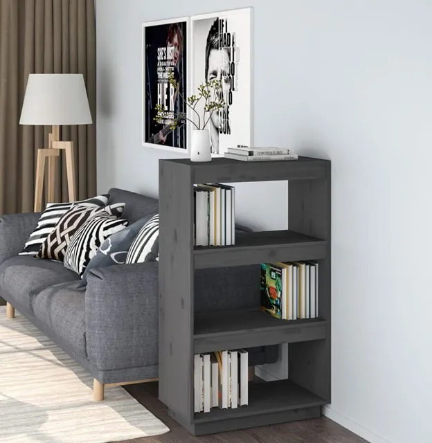 Szary drewniany niski regał na książki - Lika 7X