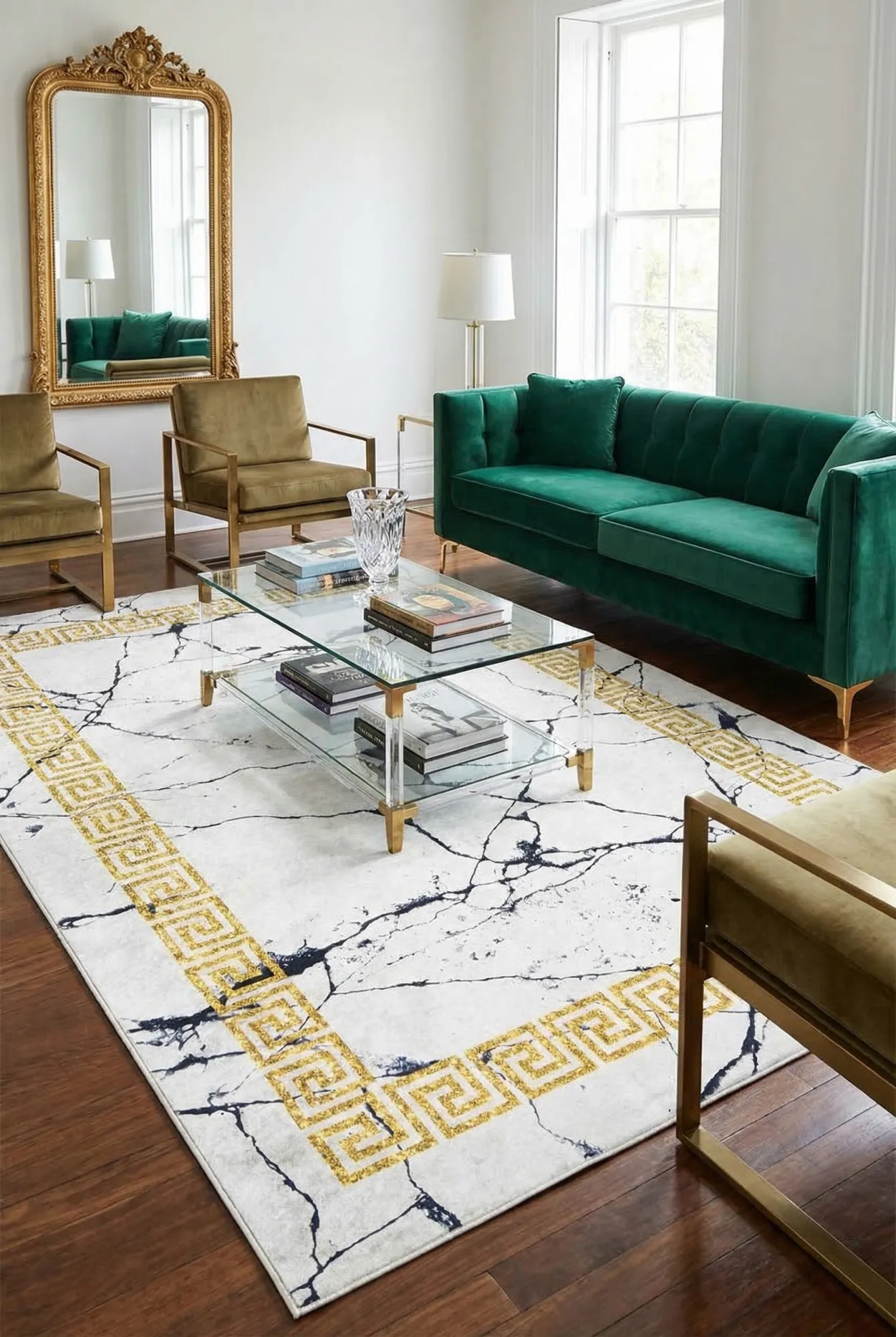 Aranżacja salonu z dywanem w stylu glamour ze złota ramką Amio 3X