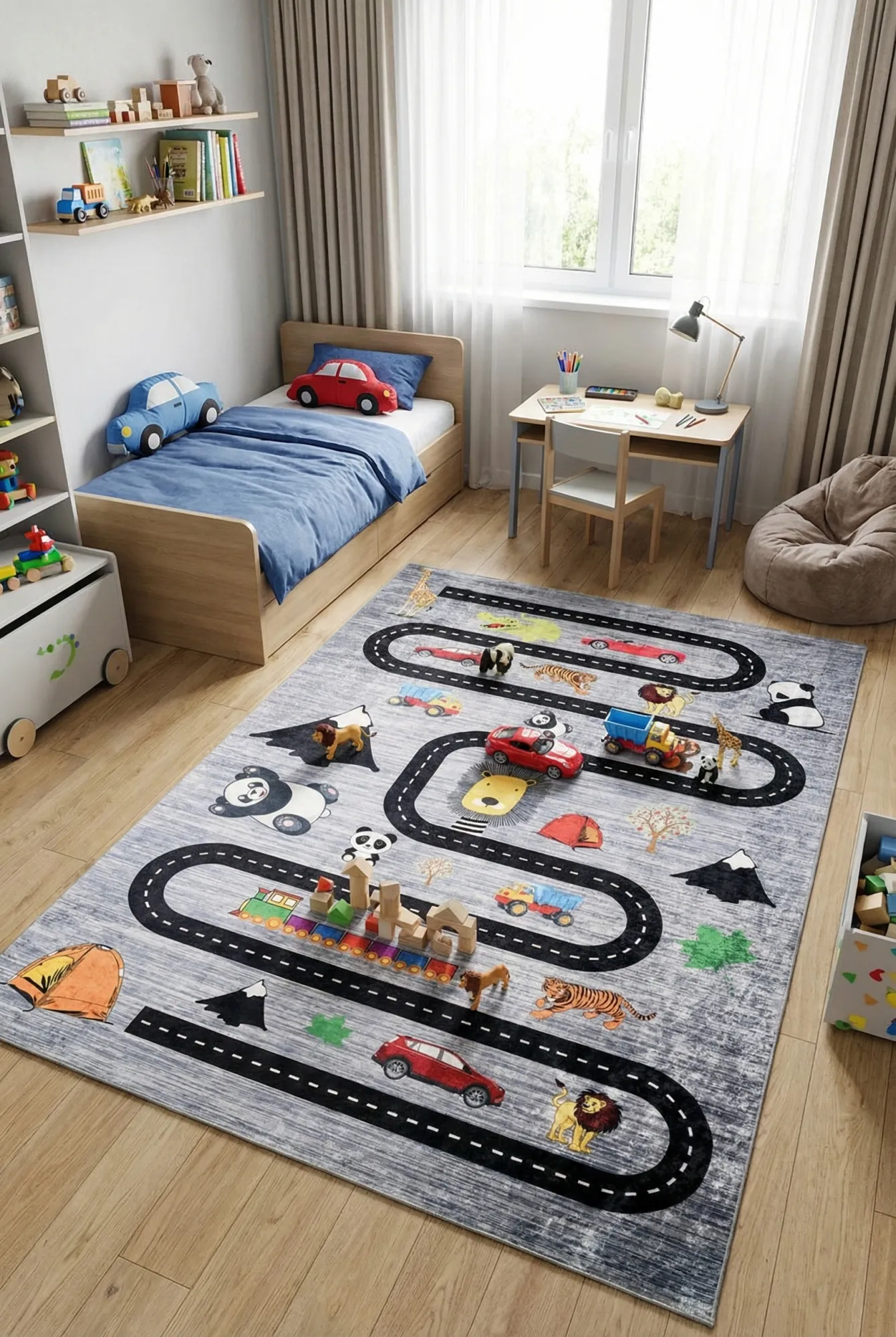 Aranżacja pokoju chłopięcego z dywanem z drogą Luni 3X