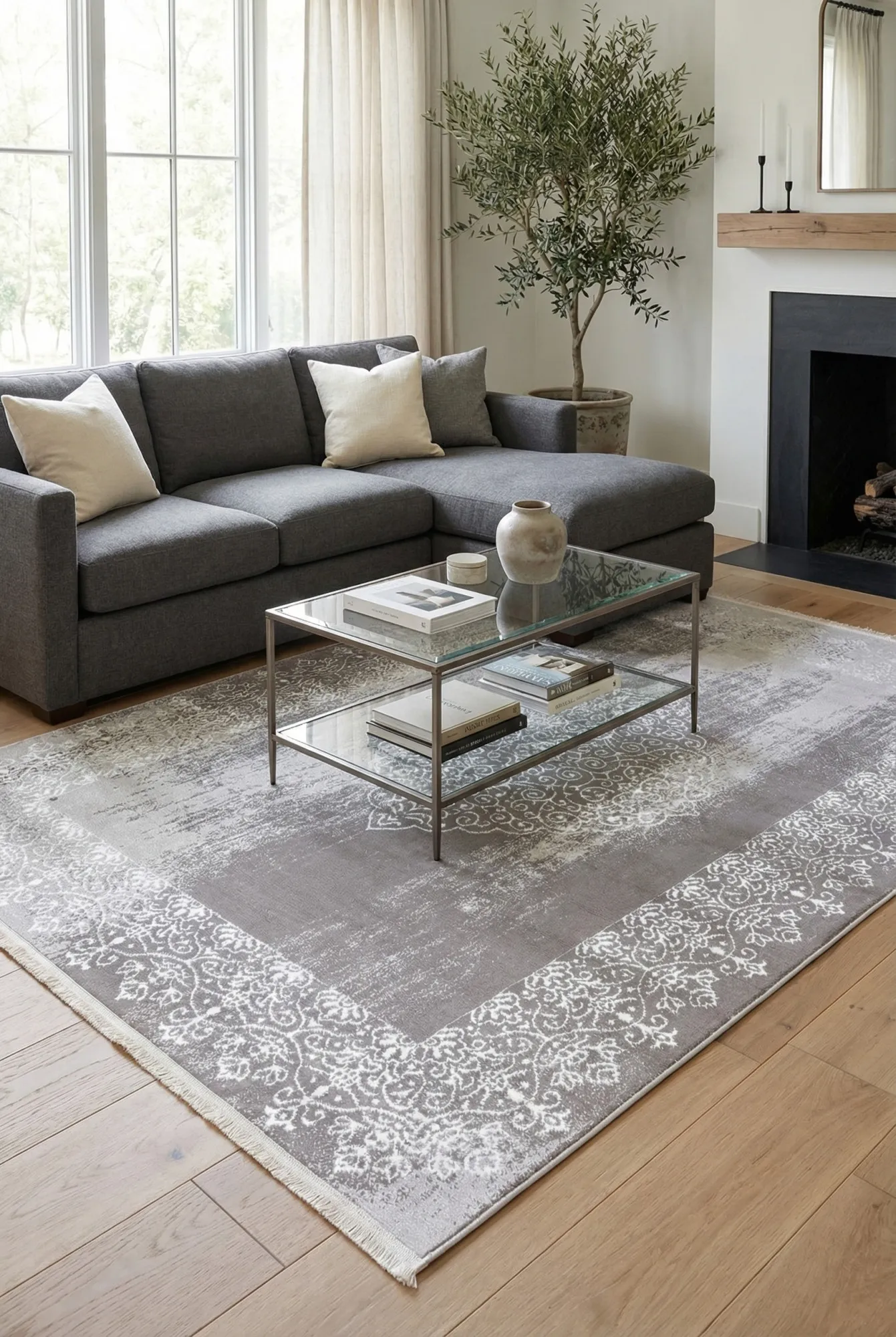 Dotyczy: Przecierany szary dywan w złoty wzór glamour - Elwo 9X