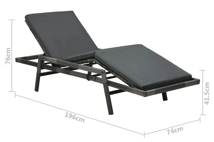 - Wymiary całkowite po rozłożeniu (na płasko): długość: 196 cm, szerokość: 74 cm, wysokość: 41 cm.