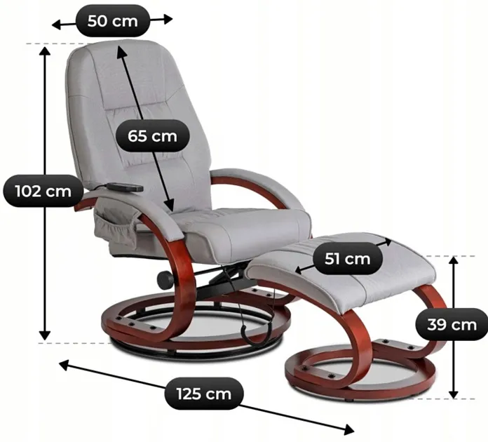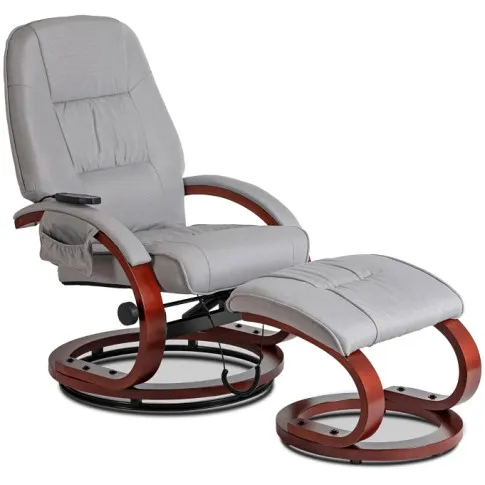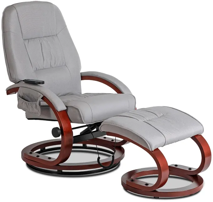 Szary fotel masujący z podnóżkiem - Cushy 4X