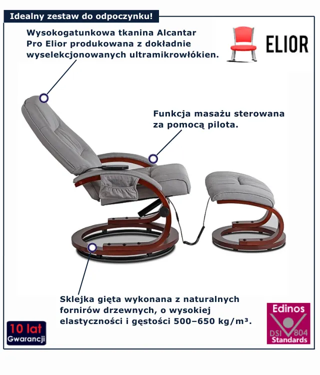 Fotel z podnóżkiem Cushy 4X marki Edinos Premium to inwestycja w Twój codzienny komfort i dobre samopoczucie. To mebel, który rozumie, jak ważna jest chwila wytchnienia i który oferuje Ci ją w najwyższej jakości wydaniu. Jego atrakcyjna cena 1298 zł to naprawdę niewielki koszt w porównaniu z nieocenioną wartością głębokiego relaksu. Nie czekaj – spraw sobie ten wyjątkowy fotel już dziś i odkryj, jak powinien wyglądać prawdziwy odpoczynek!