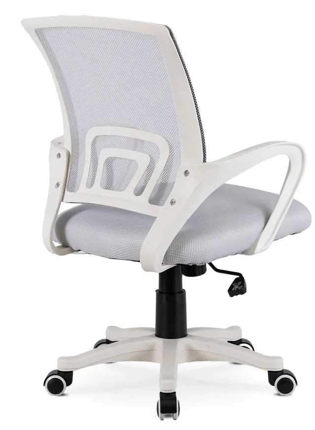 • Podłokietniki w harmonijnym kolorze – białe, subtelne i funkcjonalne, pełnią zarówno rolę estetyczną, jak i praktyczną – odciążają ramiona i poprawiają komfort użytkowania.