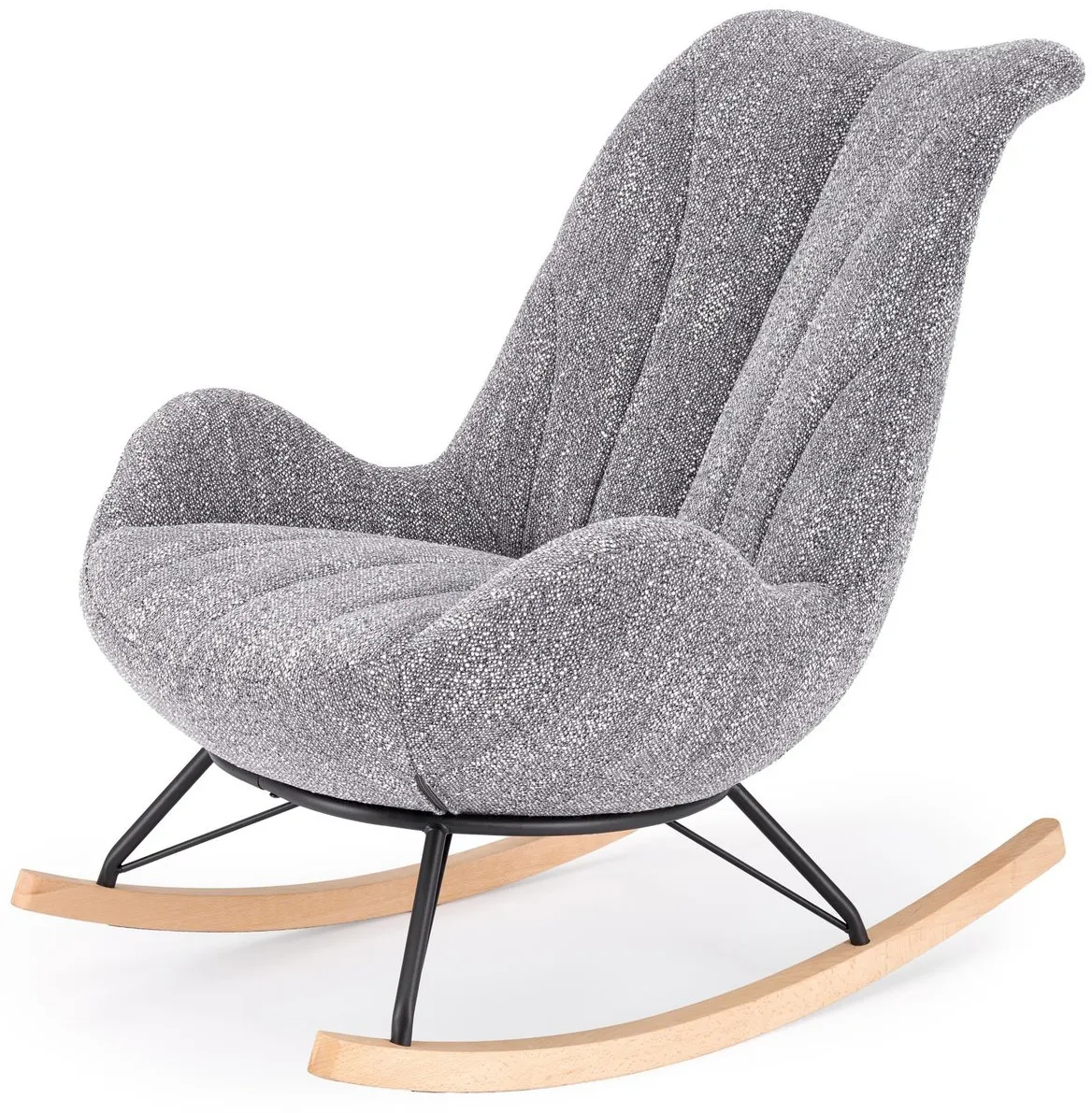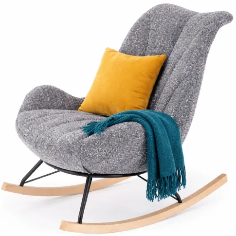 Szary designerski miękki fotel bujany Arezia