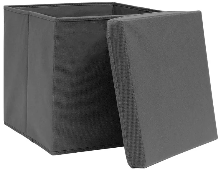 • Zestaw składa się z 4 sztuk składanych pudełek z pokrywą.