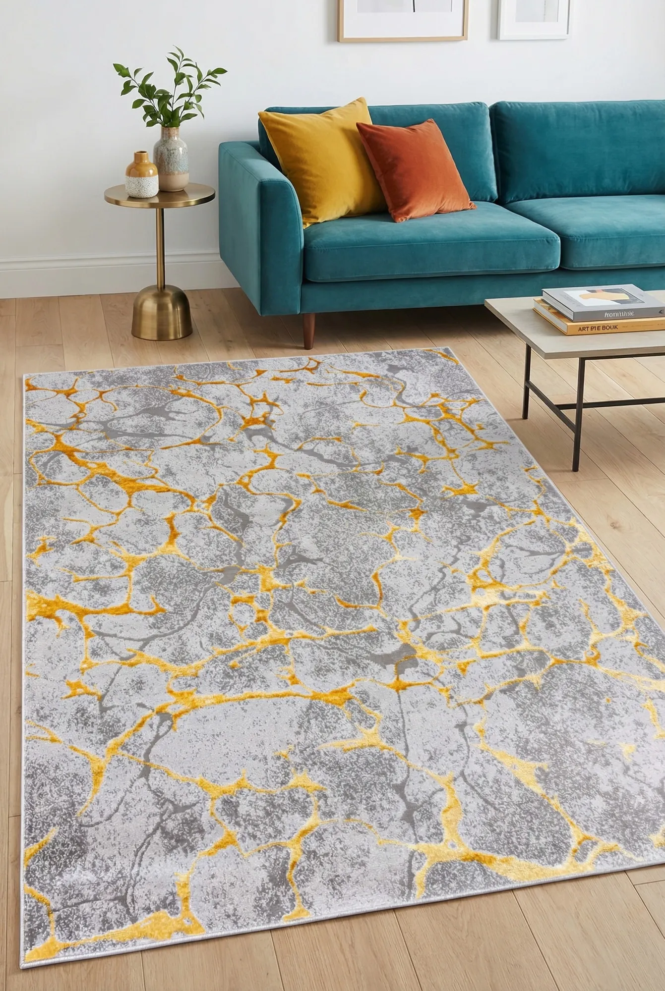 Szaro złoty dywan w marmurowy wzór Elwo 4X