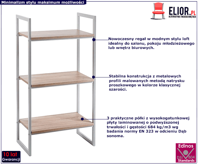 - Modny kolor: szary + dąb sonoma. Kliknij w link i sprawdź także inne regały industrialne w sklepie Edinos.pl. Stwórz swój praktyczny zestaw mebli.