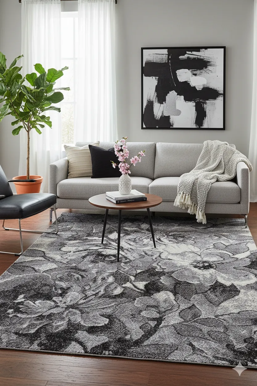 Dotyczy: Brązowy nowoczesny dywan w kwiaty - Dinks 3X