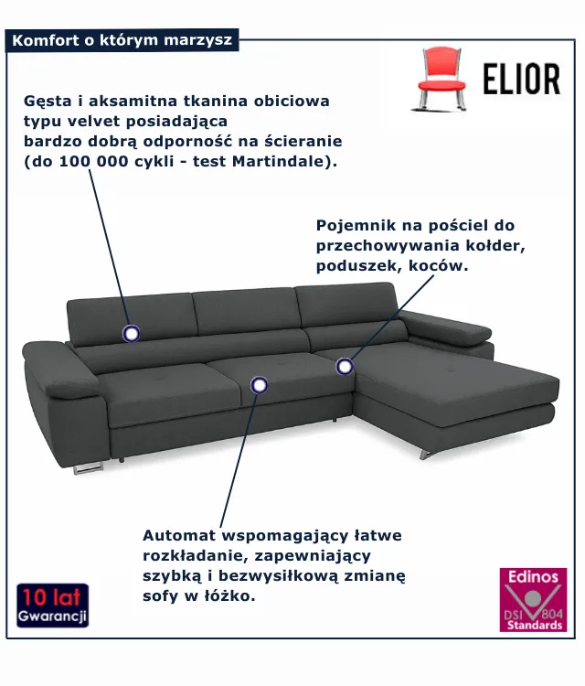 Dotyczy: Narożnik rozkładany z funkcją spania w kolorze morskim - Grenvo