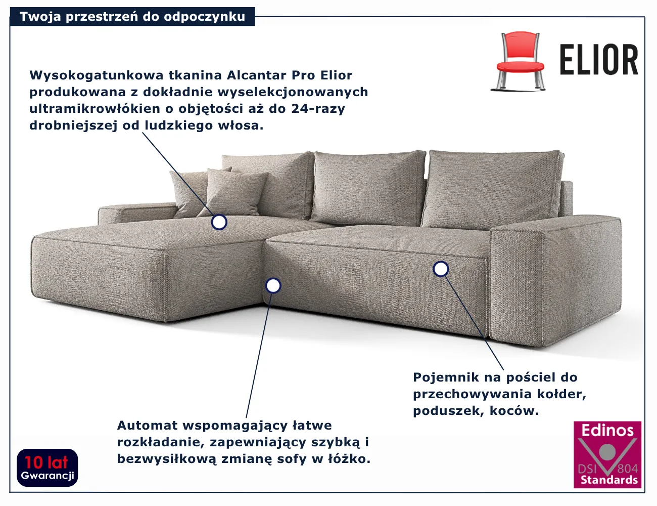 Dotyczy: Ciemnoszary narożnik rozkładany z pojemnikiem na pościel - Lusvane 3X