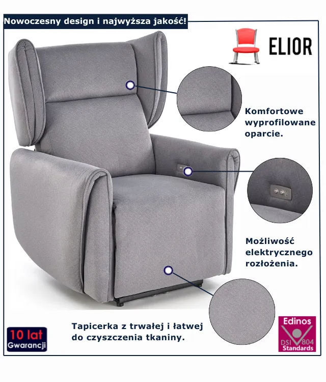 • Modny kolor: popiel. Kliknij w link i sprawdź także inne fotele do salonu w sklepie Edinos.pl. Stwórz swój praktyczny zestaw mebli.