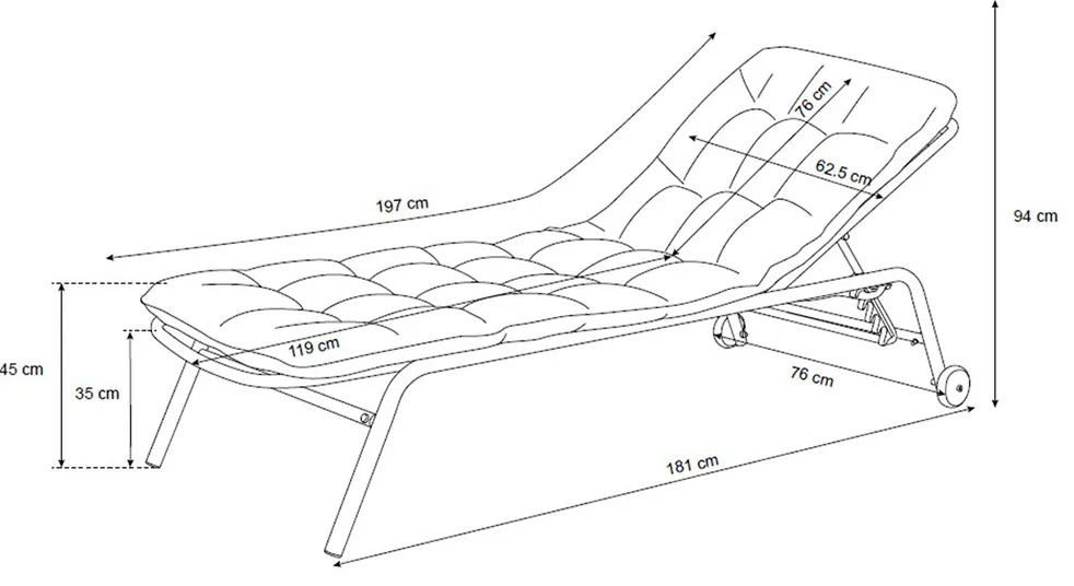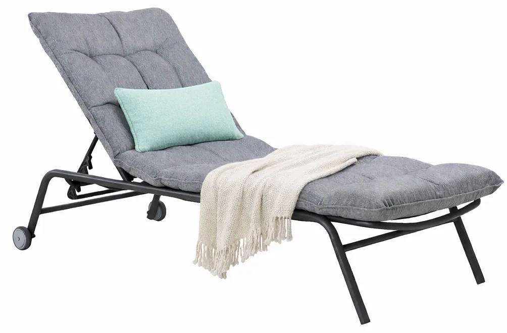 • Wbudowane kółka – bez wysiłku przestawisz leżak w miejsce, gdzie akurat świeci słońce lub panuje przyjemny cień