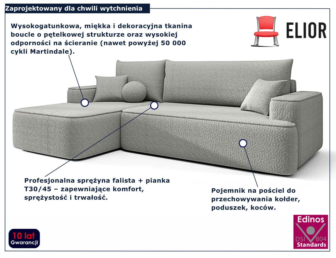 Szary narożnik rozkładany w kształcie litery L Laremo 4X