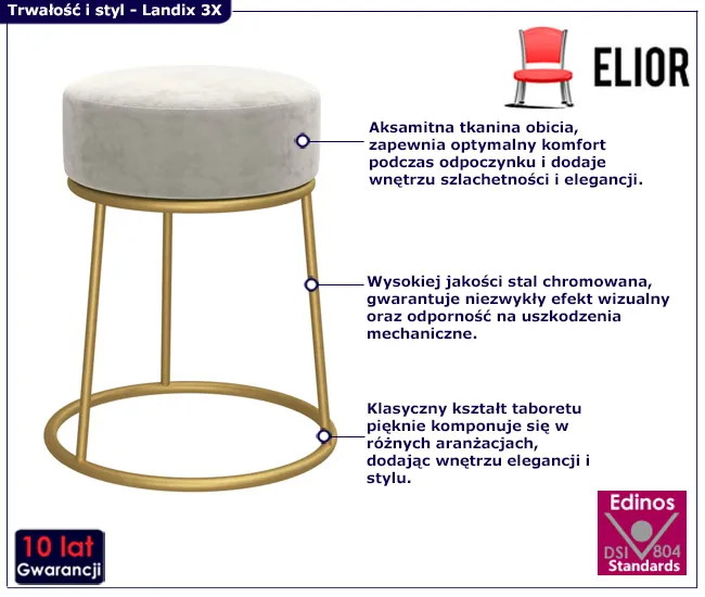 Dotyczy: Kremowy welurowy taboret okrągły glamour - Viena 3X