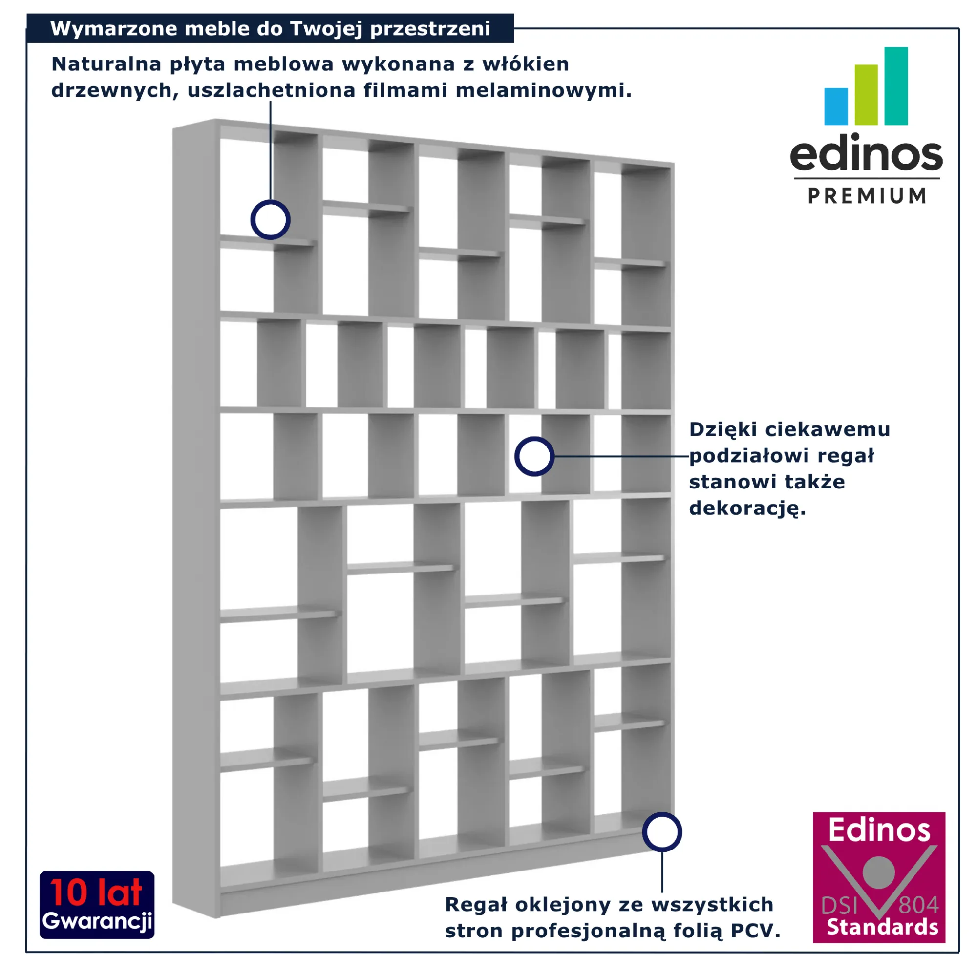 • Oryginalny, asymetryczny układ półek nadający wnętrzu designerskiego charakteru