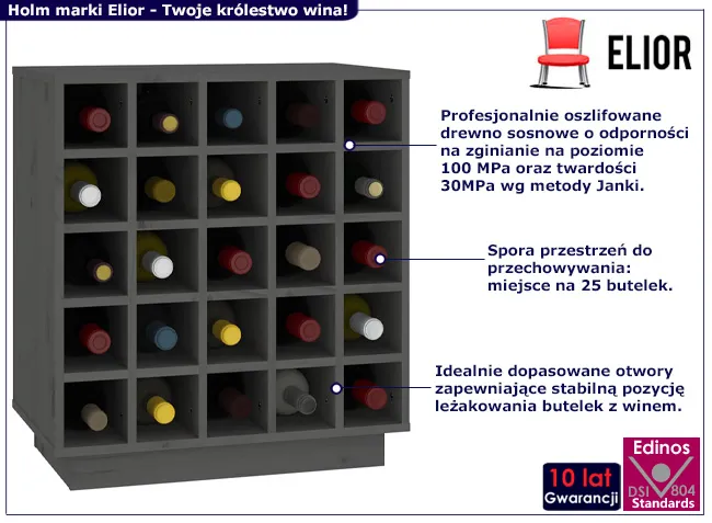 • Kolor: szaryKliknij w link i sprawdź także inne regały na wino w sklepie Edinos.pl. Stwórz swóją praktyczną przestrzeń.