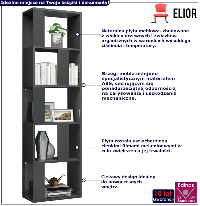 Dotyczy: Industrialny regał na książki z przegrodami przydymiony dąb - Cullen