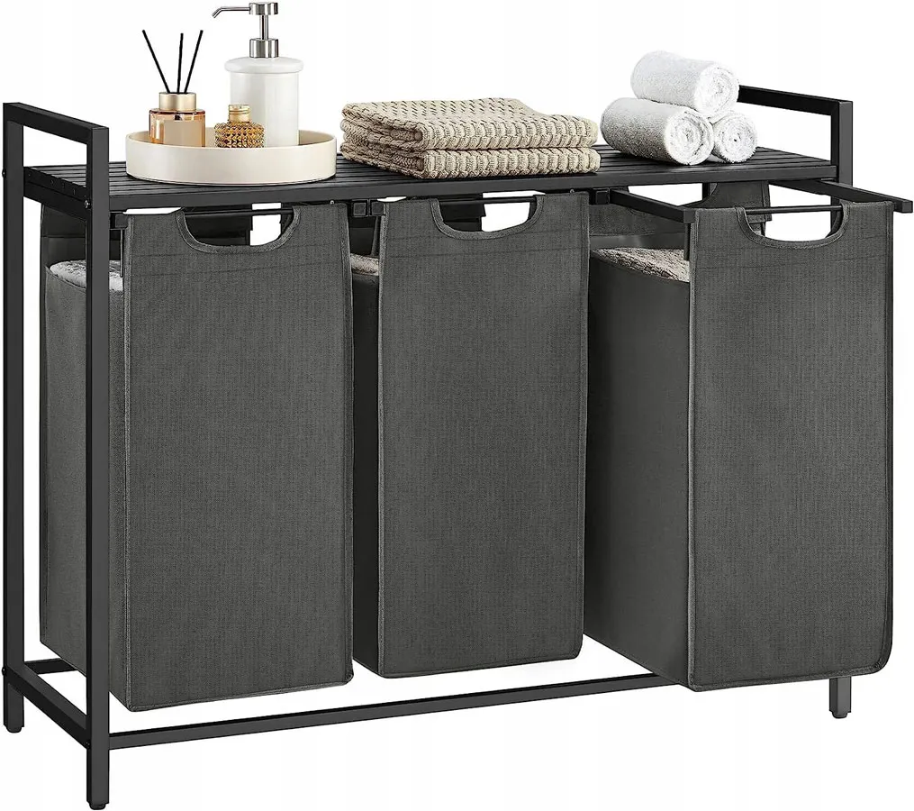 Łazienkowy regał z koszami na pranie Bedos 4X w kolorze szarym w promocyjnej cenie 218 zł (zamiast 278 zł) tylko w tej ofercie!!! Zamawiając go już teraz zyskujesz aż 60 zł rabatu!