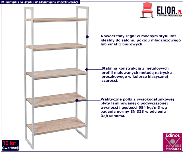 - Modny kolor: szary + dąb sonoma. Kliknij w link i sprawdź także inne regały industrialne w sklepie Edinos.pl. Stwórz swój praktyczny zestaw mebli.