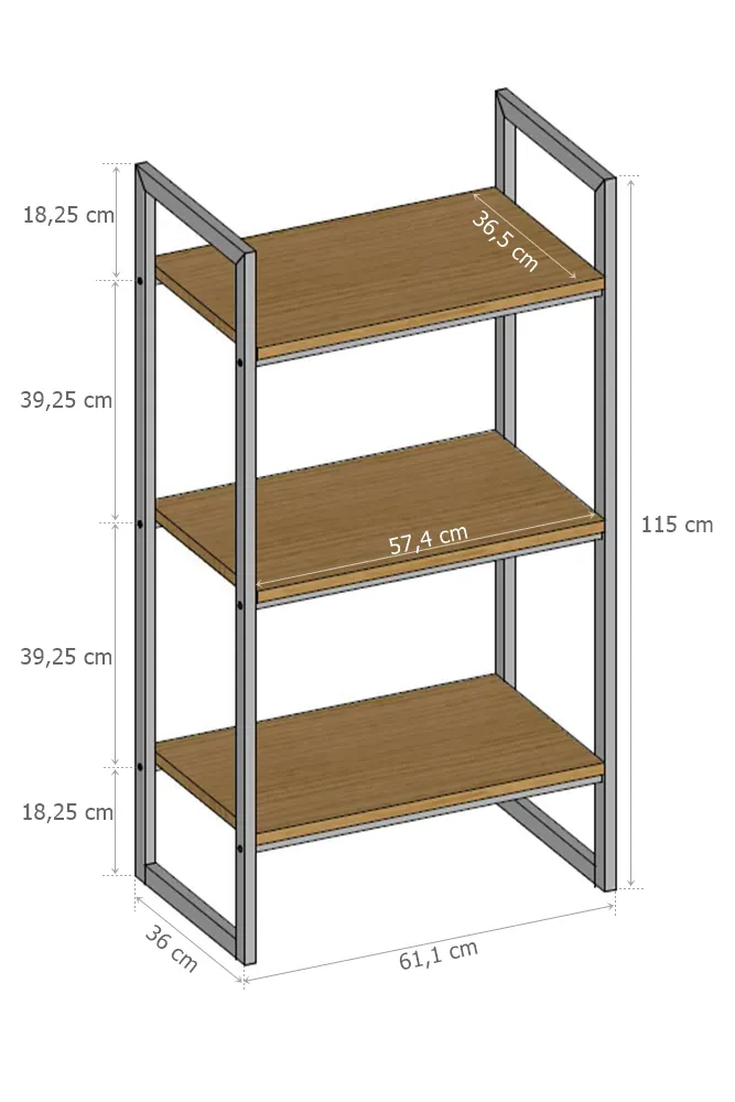 - Wymiary: szerokość mebla: 61,1 cm, wysokość mebla: 115 cm, głębokość mebla: 36 cm, grubość półki: 18 mm.