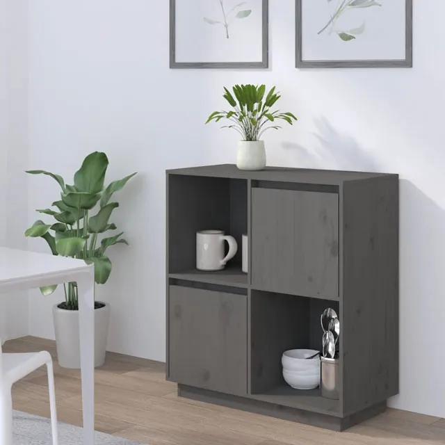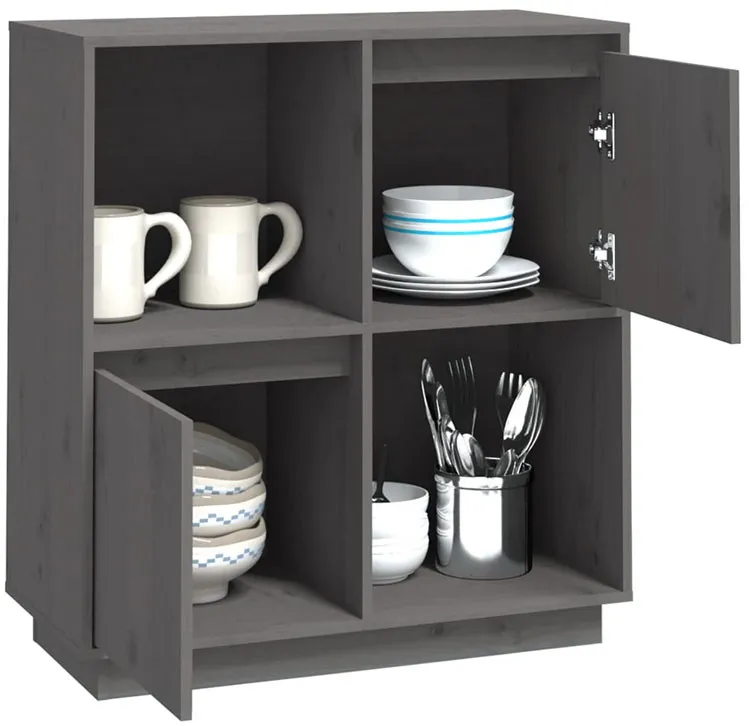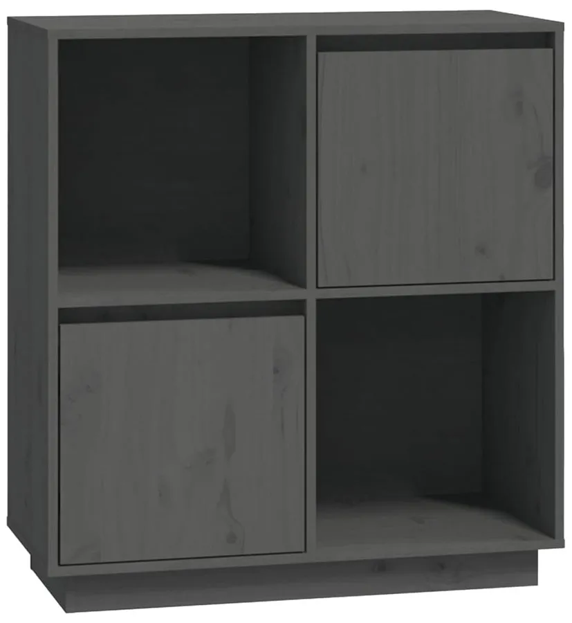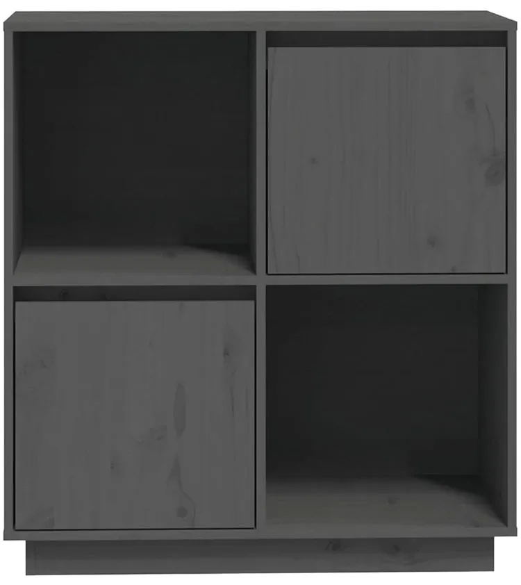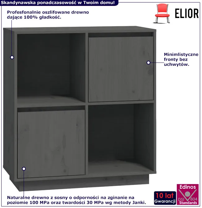 Infografika szarego sosnowego regału kwadrat z 2 szafkami Sorik 5X
