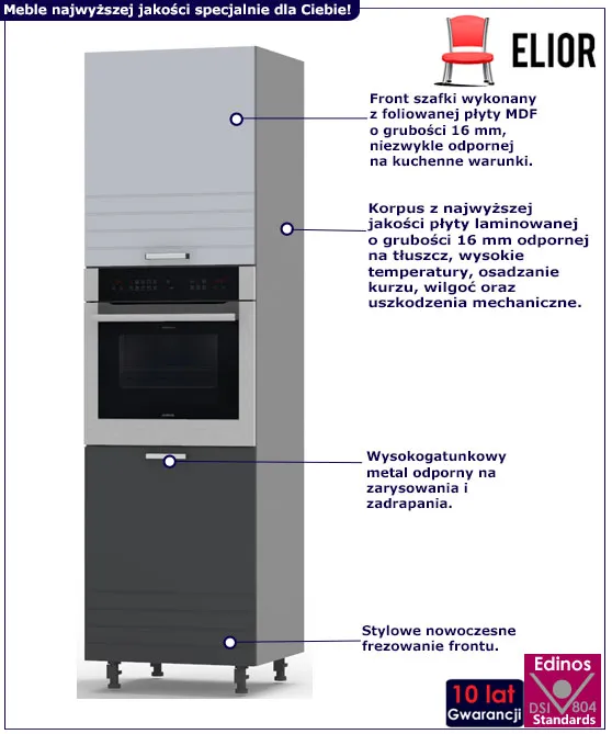 Sprzęty kuchenne powinny stanowić całość z resztą zabudowy. Z tego powodu proponujemy Ci fantastyczną szafkę stojącą Nitis 16X marki Elior. Mebel zawiera świetną wnękę, która będzie idealnym miejscem na Twój piekarnik.