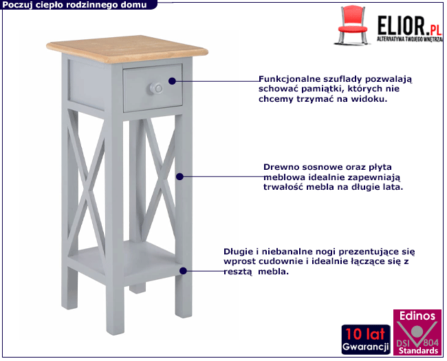 Dotyczy: Biały stolik boczny z szufladą - Lazola