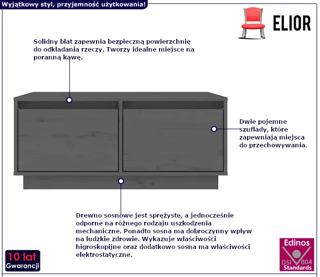 Zamawiając produkt w sklepie Edinos.pl otrzymujesz 100% gwarancję satysfakcji. Jeśli uznasz, że produkt zakupiony u nas nie spełnia Twoich oczekiwań, możesz zwrócić go do nas w ciągu 100 dni od daty zakupu, a my oddamy Ci pełną kwotę zamówienia. Ustawowo czas ten wynosi tylko 14 dni, ale jesteśmy tak pewni Twojego zadowolenia z naszych produktów, że postanowiliśmy wydłużyć ten termin do 100 dni, bo wierzymy, że dobre wnętrze nie potrzebuje słów. Czasem wystarczy jeden mebel, by poczuć się naprawdę u siebie. Dlatego tworzymy rzeczy, które nie dominują – ale współistnieją z Tobą. Są trwałe, wygodne, piękne w prostocie. Dają wolność wyboru i spokój w codziennym życiu. Dziekujemy za zaufanie.
