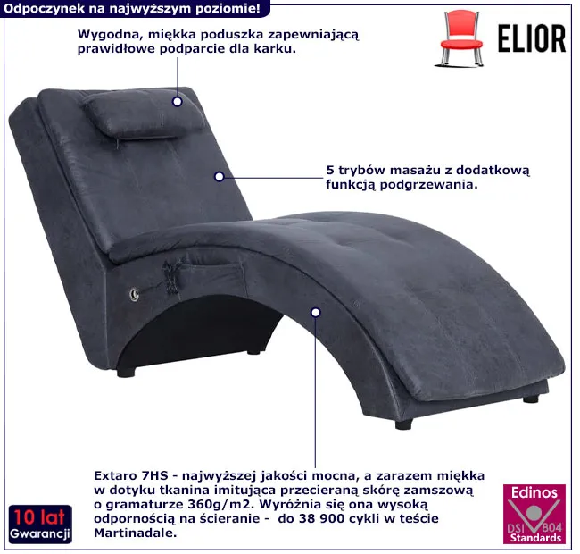 Dotyczy: Brązowa masująca leżanka do salonu z zamszowej skóry - Leah 5X