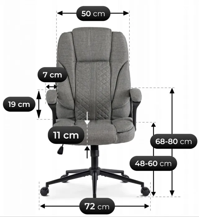 Jestem zadowolona z zakupu, bo fotel jest nie tylko wygodny, ale też stabilny. Szary kolor wygląda nowocześnie i dobrze komponuje się z wystrojem wnętrza. Montaż nie sprawił problemów, a wszystkie elementy były starannie zapakowane. Produkt spełnia moje oczekiwania zarówno pod względem estetyki, jak i funkcjonalności.
