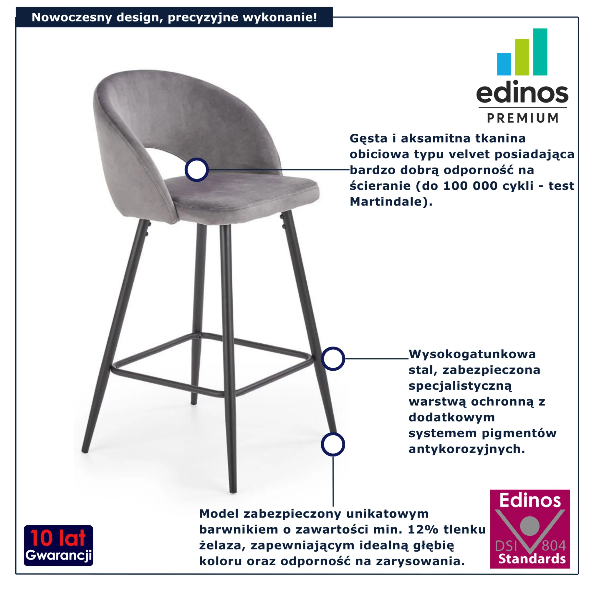 Dotyczy: Granatowe nowoczesne tapicerowane krzesło barowe do wyspy - Apuss